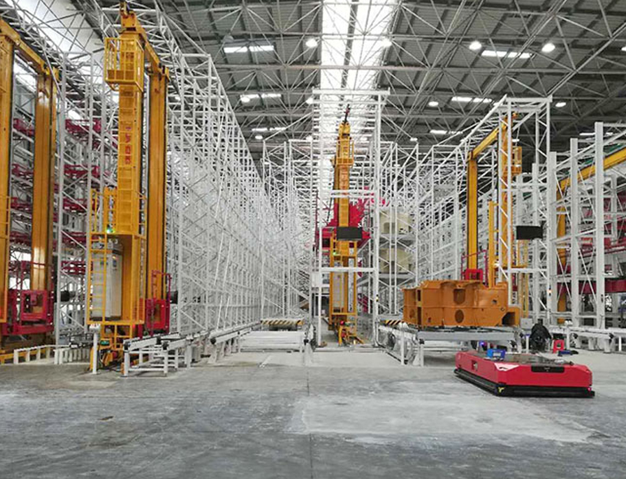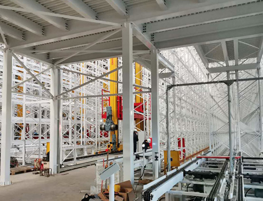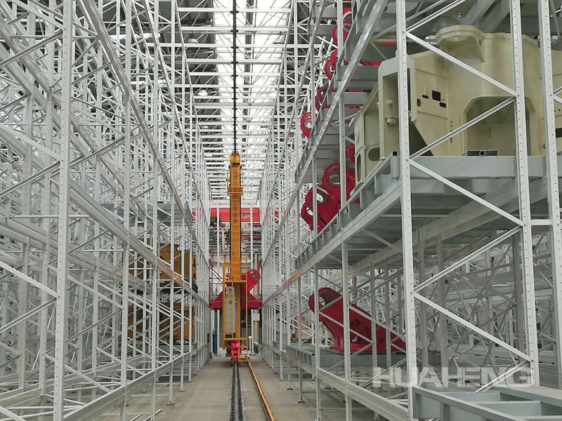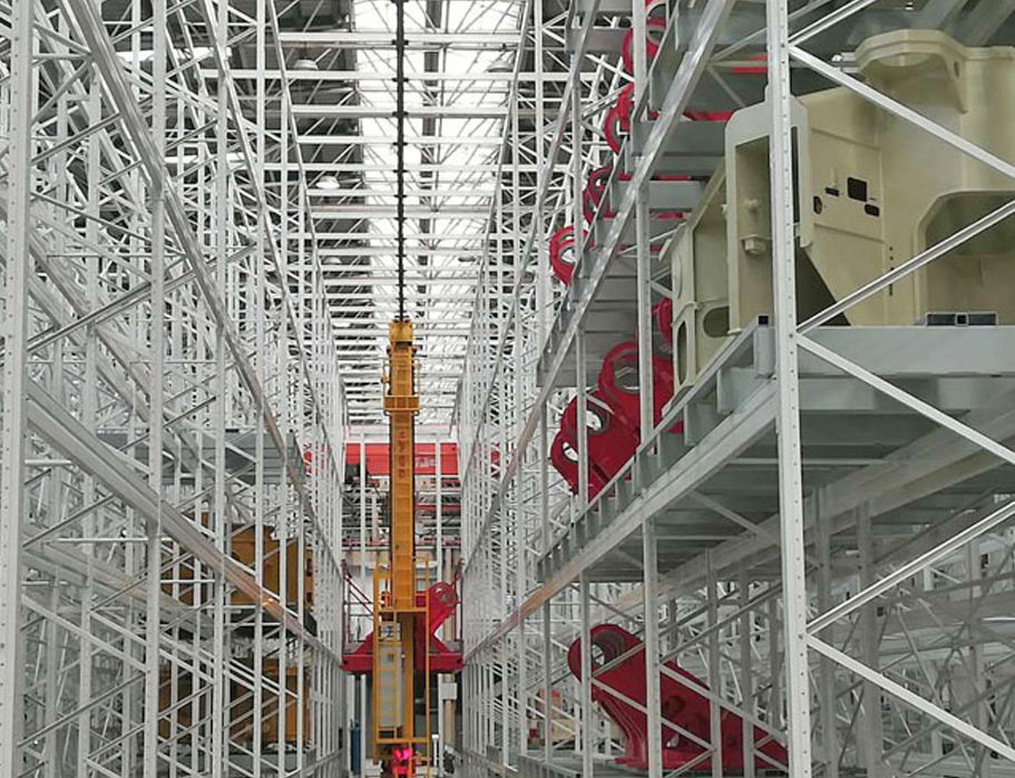 项目介绍:存放物件:转塔主体、转台、后支腿臂、前支腿臂等。大件自动立体货仓设5条巷道,货架高10米,堆垛机额载4500KG